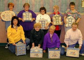 Some of the wonderful, creative ladies that participated in the seminar. Almost everyone finished their pieces - including several who even antiqued! Keep up the good work!