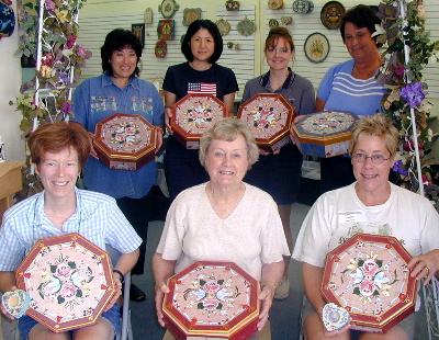 The Craft Palace A wonderful seminar with many friends from past years in California! Hard working folks almost completed the Bavarian Bouquet Chest as well as the Sweetheart Clock. Some folks finished extra pieces as well! Also, beautiful color changes made the projects unique and special. Great job folks! |