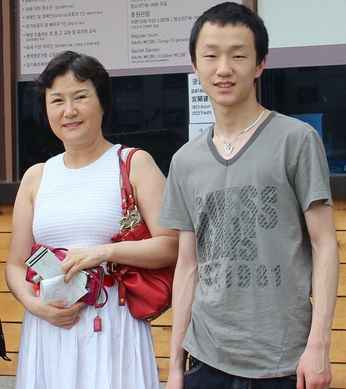 to the Changdeokgung Palace. Currently, only 30% of the palace structures remain. Changdeokgung was added to the UNESCO World Heritage List in 1997. "The UNESCO committee inscribing the site stated the place was an outstanding example of Far Eastern palace architecture and garden design" being exceptional because the buildings are "integrated into and harmonized with the natural setting" and adapted "to the topography and retaining indigenous tree cover." In any case, it was wonderful to see the many beautifully restored buildings with their lovely natural surroundings right in the heart of Seoul. To complete a wonderful day full of Korean flavor, Thomas, Lisa and I attended a beautiful show of traditional Korean court dances. Each dance was more lovely than the one before and the costumes were spectacular. At then end of the evening we had our photograph taken with four of the beautiful dancers! I would like to express a huge THANK YOU once again to Eunha, Alex, Abby, Thomas and Lisa all of whom worked very hard to make my visit so memorable! And a special THANK YOU to Abby and Lisa who took many photos for me when my camera broke. I will never forget my wonderful visit to Korea and all of the very talented painters that I was privileged to teach. I hope you have all finished your projects by now! |
