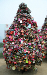 On the first day after my arrival in Seoul, Alex, Eunha and Abby (my wonderful interpreter) made me feel very welcome. After a tasty lunch of some very unfamiliar but excellent food, we took a cable car up to the Seoul Tower. The Seoul Tower is a communication and observation tower located on Namsan Mountain in central Seoul. It was hazy the day we were there but it was still fun to get a 360 degree view of Seoul from the observation platform. On the grounds of the tower, there were small trees loaded to the hilt with named padlocks placed there by couples as a symbol of their love! Walking around the streets of Seoul,